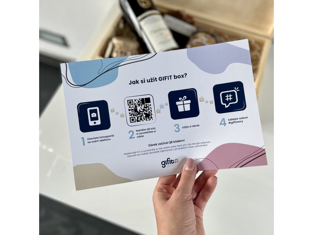Pod QR kódem najde obdarovaný nejen tvůj vzkaz, ale i zajímavé informace o produktech. Zkrátka, dozví se vše pro to, aby si dárek maximálně vychutnal.